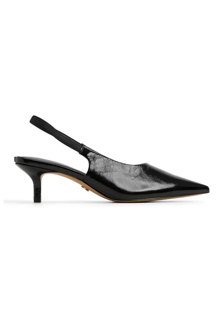 Кожени обувки с остър връх и отворена пета - Черен