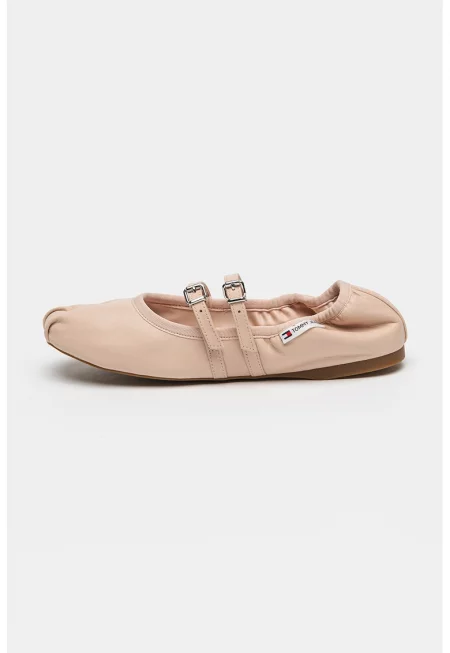 Кожени обувки Billie Mary Jane с масивен ток - Светло бежово