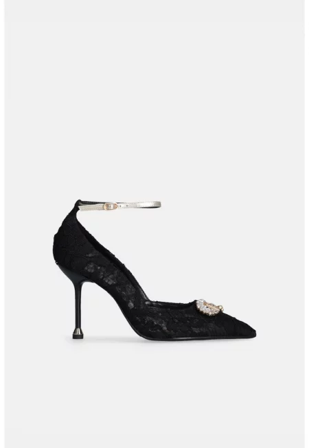 Обувки от лачена кожа с ток и квадратен връх - Черен