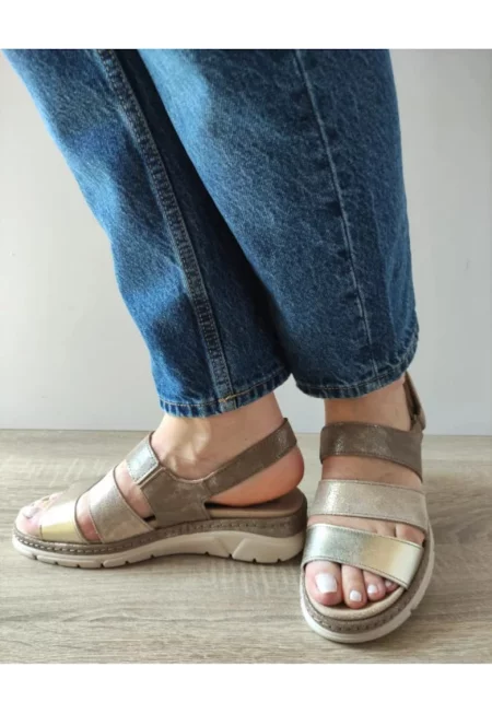 Ежедневни дамски сандали 12511T Mostar H6-1 Златни + Металик - Златен - Златист