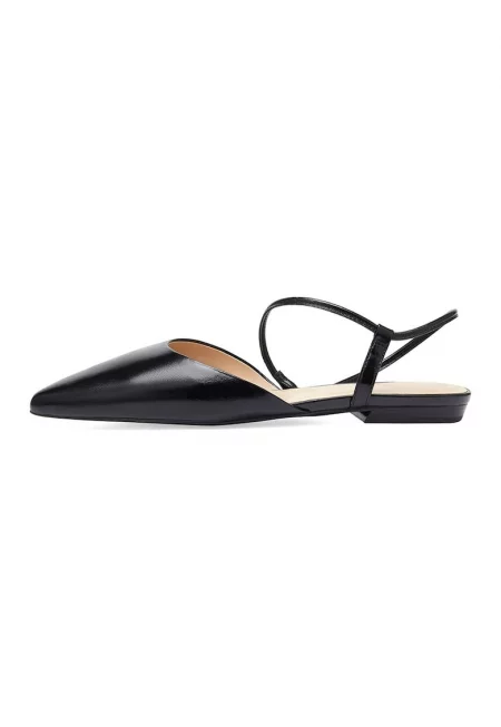 Кожени остри пантофки - Черен