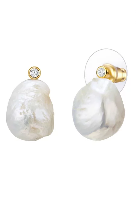 Обеци с 14К златно покритие и синтетични перли - Златист
