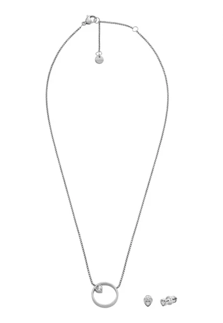 Колие и сърцевидни обеци - Сребрист