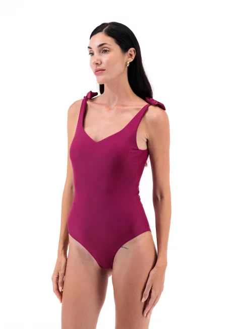 Цял бански с шпиц - Тъмновиолетов