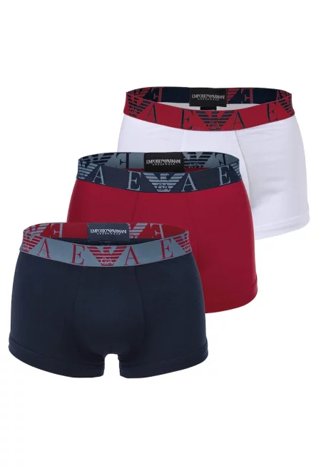 Боксерки с памук и лого на талията - 3 чифта - Червен/Бял/Син