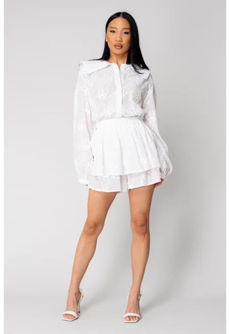 Комплект от жилетка и шорти от лен - White 11453