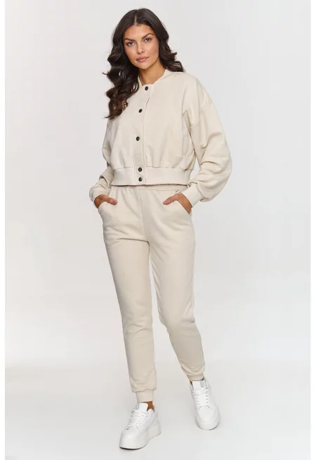 Комплект яке с открити рамене и дълъг панталон Бежов 16633