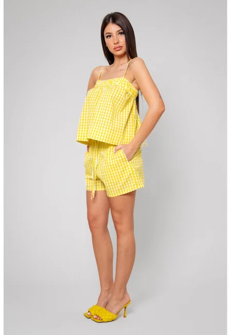 Кариран топ и къс панталон - Бял/Жълт