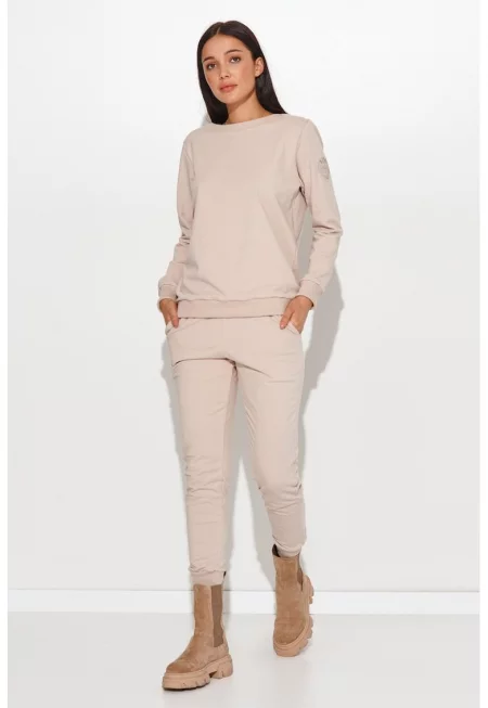 Комплект яке с открити рамене и дълъг панталон Бежов 16633 - Бежов