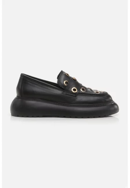 Масивни мокасини с отвори - Черен
