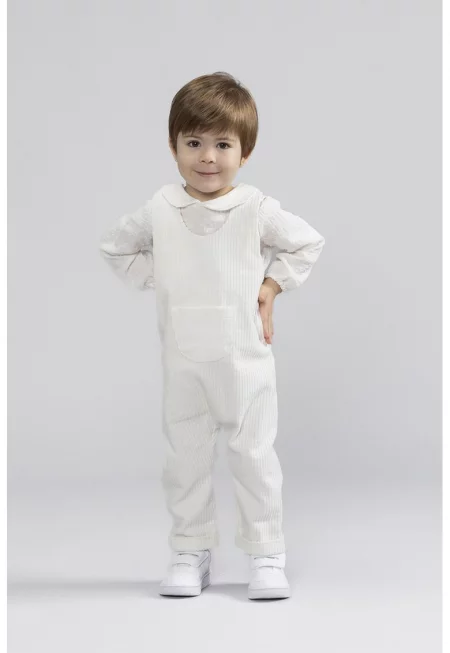 Джинсов дълъг гащеризон с пришит джоб - Слонова кост
