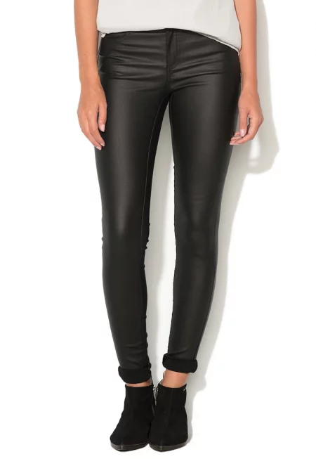 Дамски панталон -  304868757 - Еко кожа - Черен - Черен