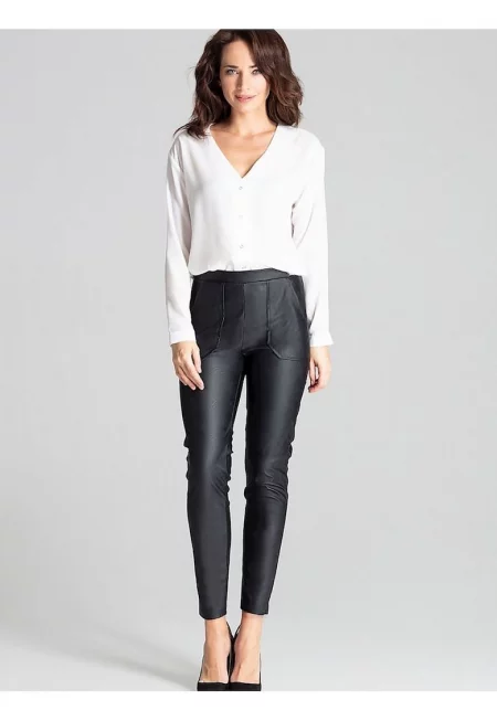 Дамски панталон - Ленитиф - еко кожа - големи джобове - черен