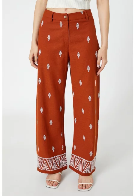 Панталон с лен с висока талия