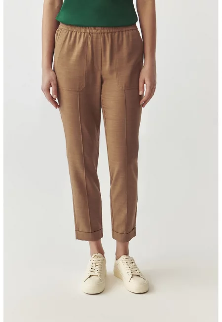 Скъсен панталон със стеснен крачол - Бежов