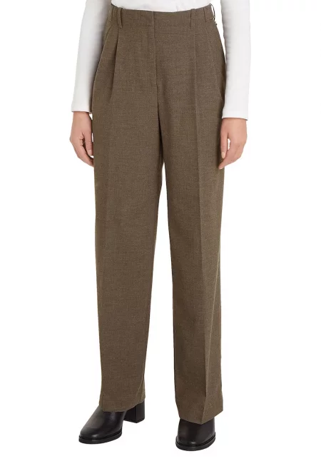 Разкроен панталон с вълна с цепка на подгъва - Карамел