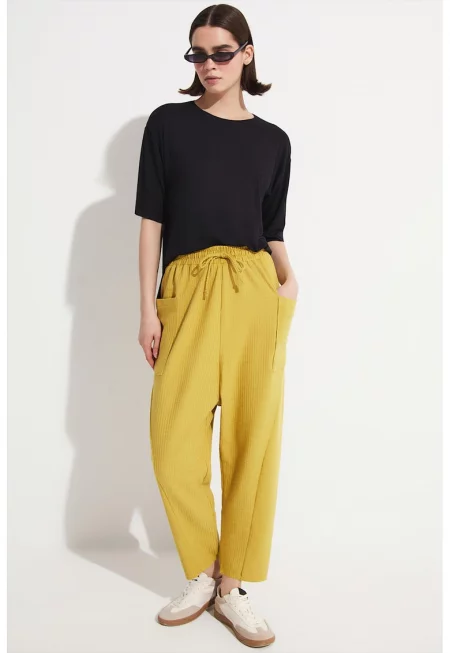 Панталон с лиосел и връзки встрани - Сиво-кафяв -