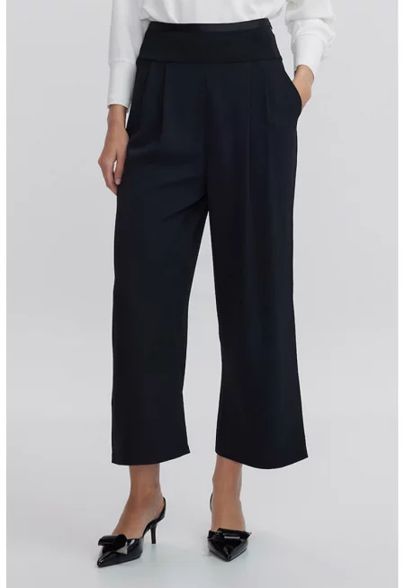 Панталон с висока талия и широк крачол - Черен