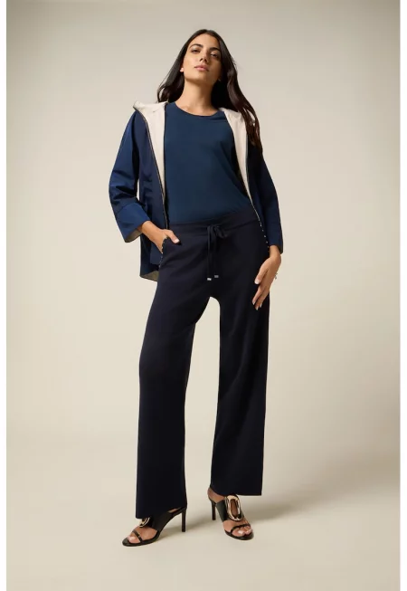 Свободен панталон с връзка и декоративни камъни - Ултрамарин синьо