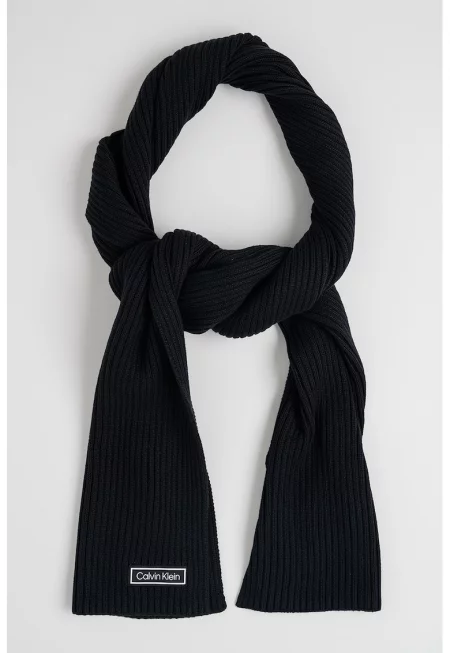 Шал с вълна с бродирано лого - Черен/Сиво-кафяв