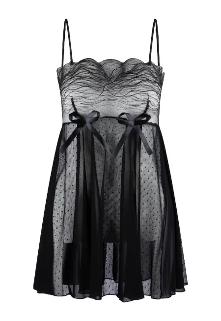 Неглиже с дантела - Черен