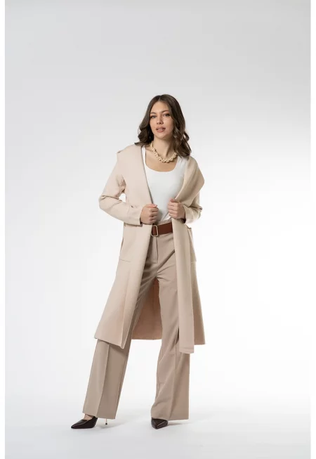 Дълга жилетка с качулка и колан