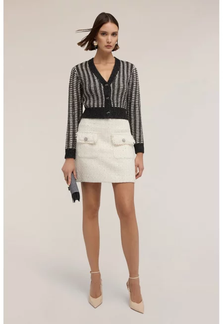 Бляскава плетена жилетка без закопчаване