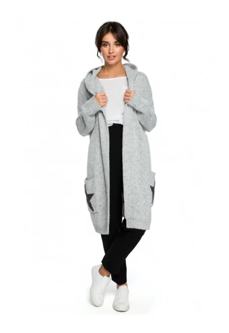 Жилетка с качулка и щампа - Акрил - Сива - Един размер