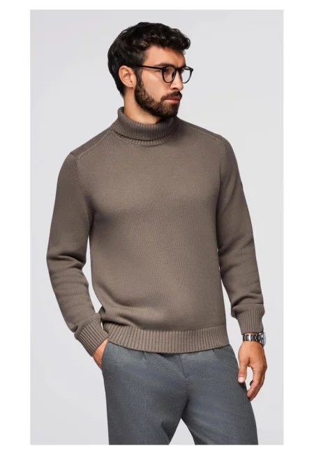 Плетен пуловер с висока яка  OM-SWTN-0163