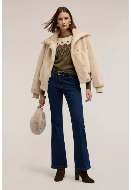Пуловер от необработена вълна с шпиц