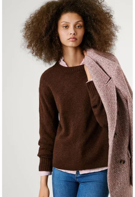 Пуловер с вълна - Тъмнокафяв