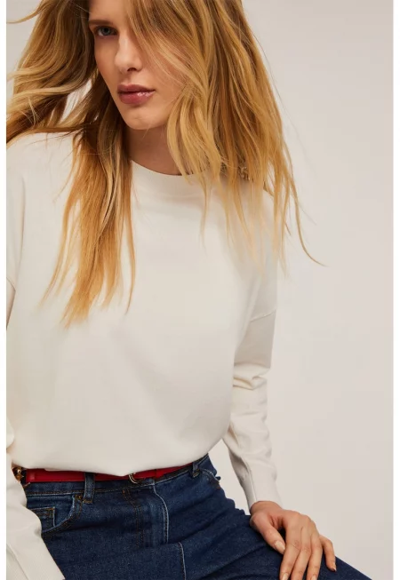 Светлобежов пуловер с леко бухнали ръкави Z-101 M9 18191