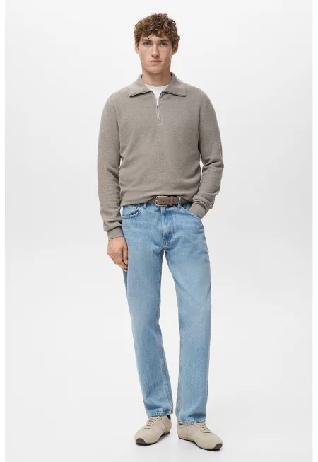 Фино плетен памучен пуловер с къс цип - Аква зелено
