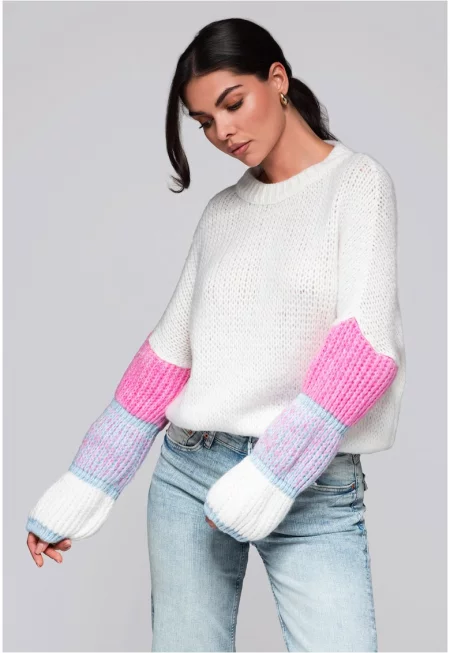 Пуловер с райета на ръкавите  LW-SWSW-0107 - Крем