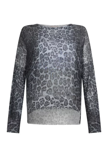 Десениран пуловер от лурекс - Светло сив/Tъмносив