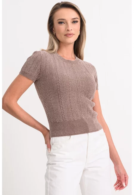 Слим пуловер с къси ръкави - Камел
