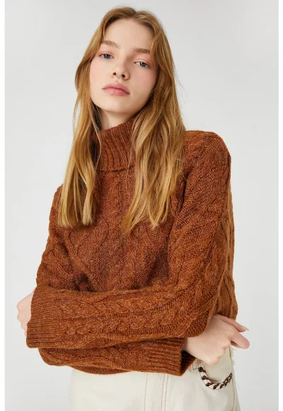 Пуловер с висока яка и паднали ръкави