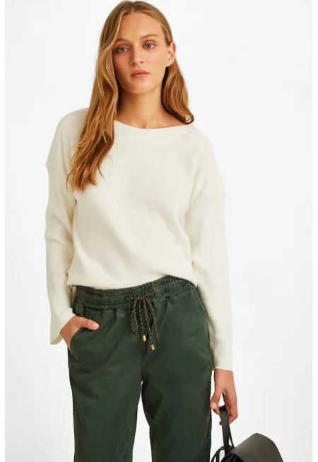 Дамски пуловер  DJ4R0424 - Рециклиран памук/полиестер - Екрю - Екрю