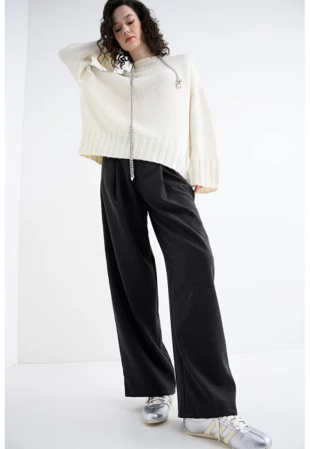 Пуловер с необработена вълна - Черен