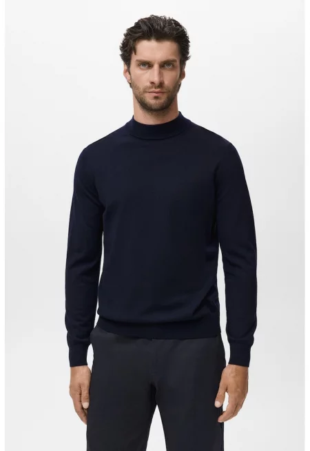 Пуловер с яка - Бял/Тъмносин