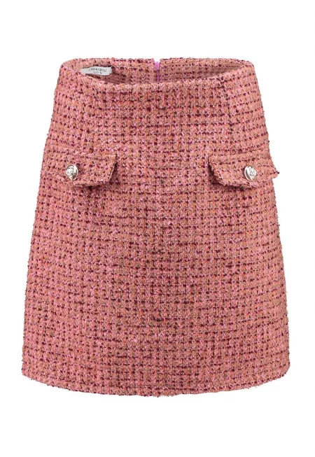 Къса пола с декоративни джобове - Прашно розово