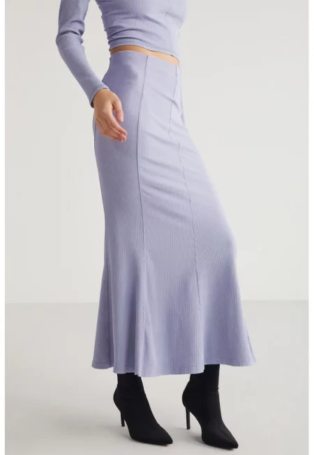 Дълга пола от органичен памук с плисе - Тъмновиолетов