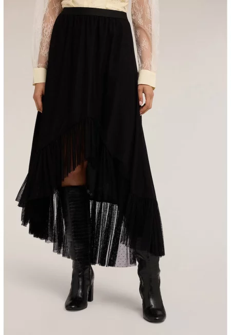 Разкроена пола от тюл - Черен