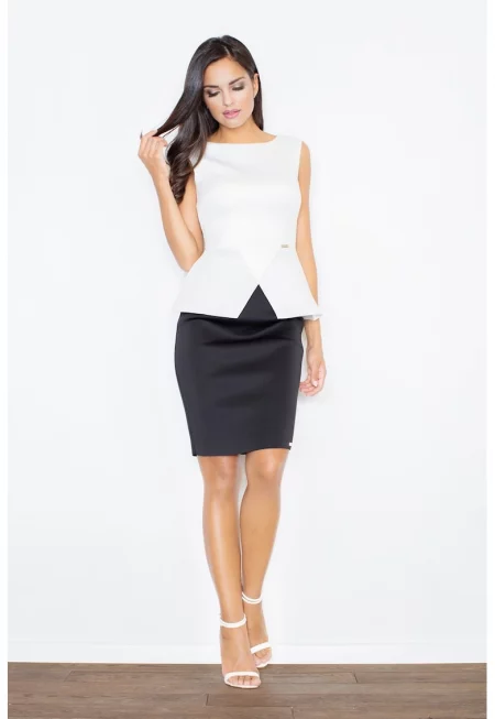 Къса права пола с вълна - Бял/Черен/Тъмносин