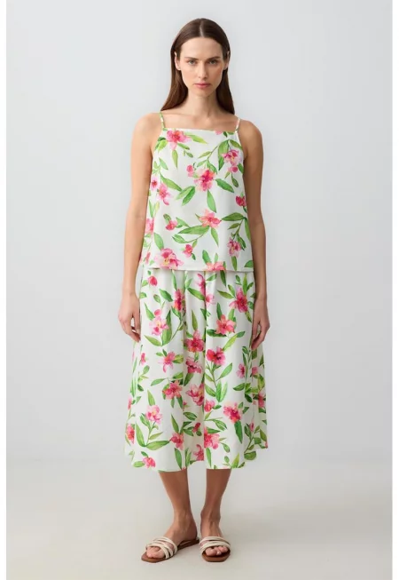 Разкроена миди пола с лиосел - Червен/Зелен/Бежов