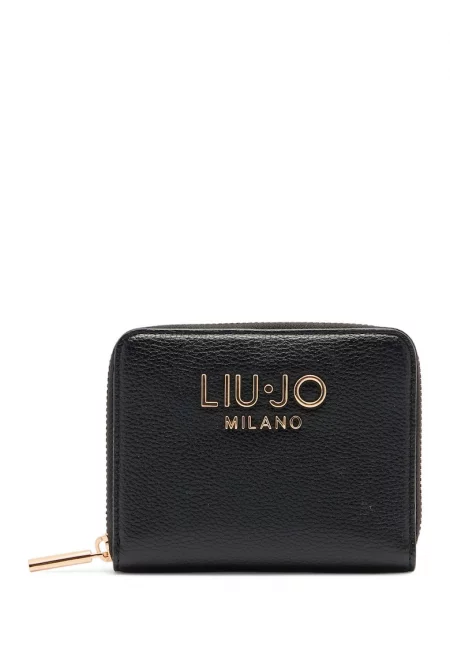Портфейл с цип и лого - Черен