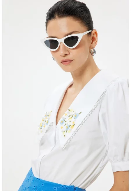Риза с паднали ръкави и бродерии