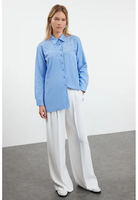Къса свободна памучна риза с дълги ръкави