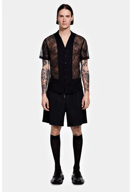 Крепирана риза с къс ръкав - стандартна кройка - Бял