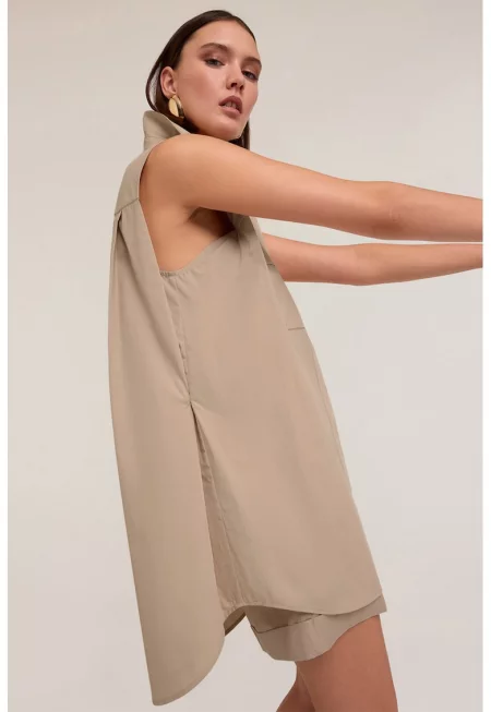 Шпиц риза с къси ръкави - Тъмнокафяв